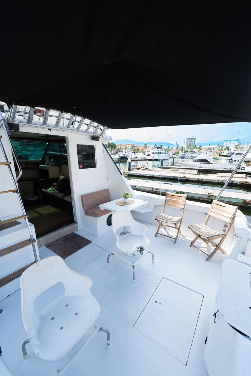 - Tu espacio a bordo: Sala-comedor con aire acondicionado, habitación con cama matrimonial, medio baño y un sistema de sonido de 8 bocinas con Bluetooth.