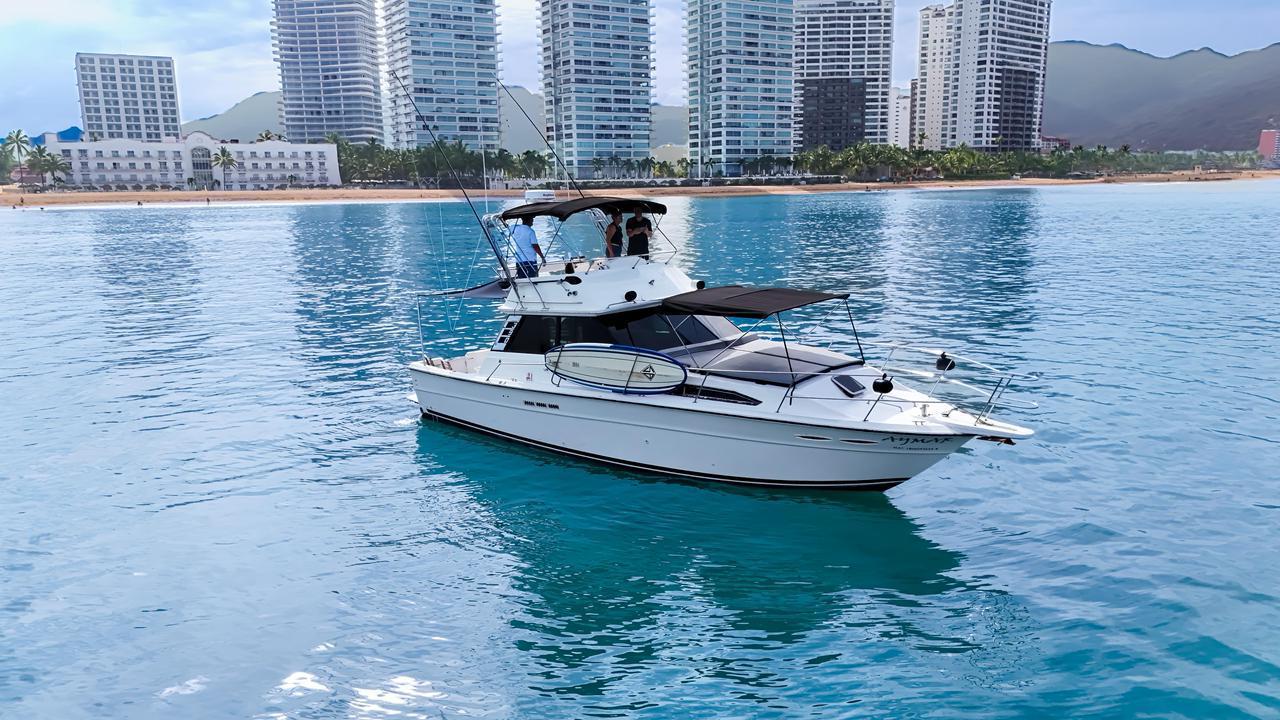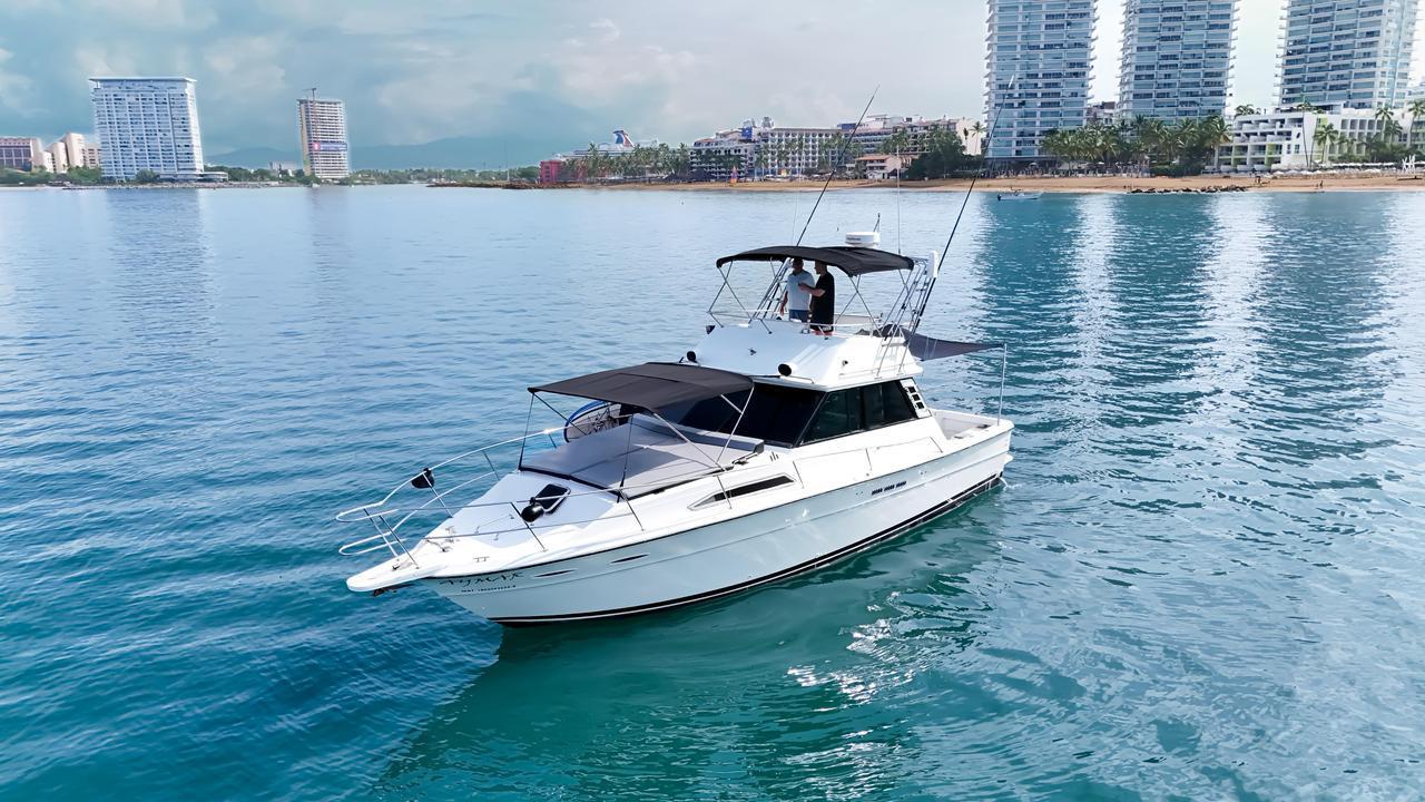 El Aymar es el Sea Ray Sedan Bridge perfecto para quienes buscan un día inolvidable en la Bahía de Banderas. Con capacidad para 15 pasajeros, ofrece el equilibrio ideal entre un espacio social relajado y total equipamiento para la diversión.